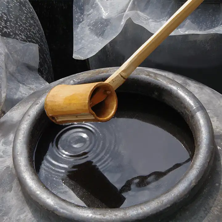 私たちはその発酵のプロフェッショナル。長年にわたり、酵母や菌の力を最大限に引き出す技術と経験を積み重ねてきました。その醸造技術を活かして生まれたのが、桷志田のクラフトビールシリーズです。「黒酢メーカーがお酒を?」そう驚かれる方が、実はとても多いのです。でも黒酢を深く知ると、きっと納得いただけるはず。黒酢づくりの途中には、一度“お酒”の段階があるのです。黒酢は、玄米・麹・水から糖化を経て、まずアルコールが生まれます。そこに酢酸菌が加わることで、初めて“酢”になる。つまり、黒酢は「お酒から生まれる発酵食品」なんです。