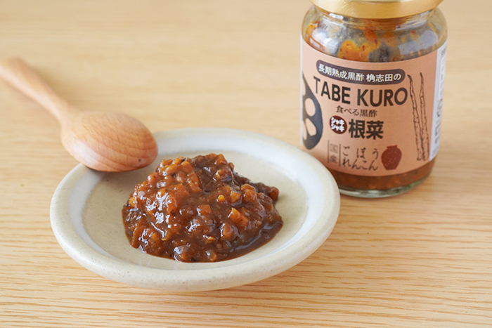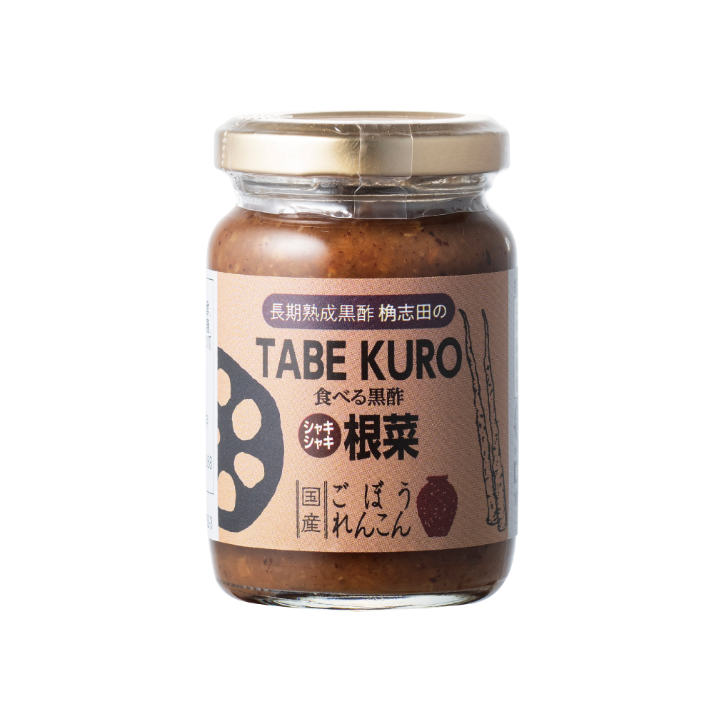 『TABEKURO 根菜』 は、国産ごぼうと蓮根を加え、シャキシャキとした食感とまろやかな黒酢のコクを同時に楽しめる一品です。ご飯のおともはもちろん、おつまみや調味料として料理の味付けにも活躍します。