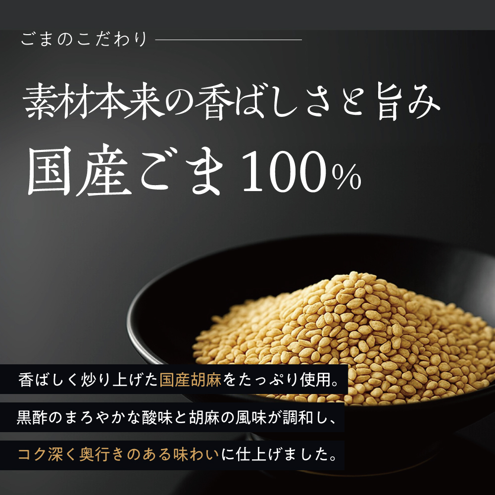 「胡麻」をふんだんに使用して作った黒酢ぽん酢です。凝縮されたうまみをご堪能ください。