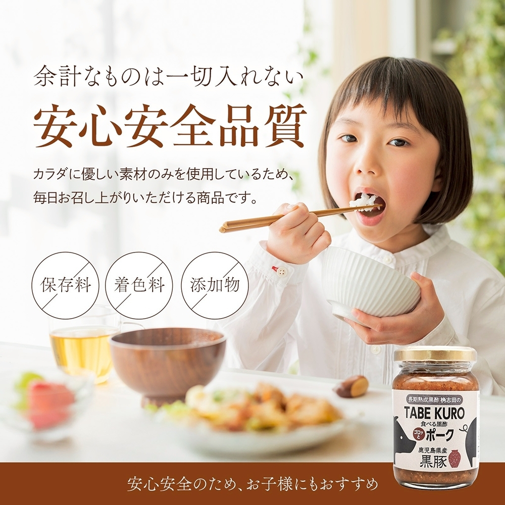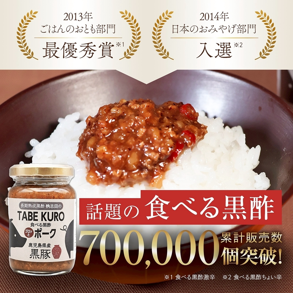 桷志田の人気商品「食べる黒酢」に鹿児島県産の黒豚を加えました。